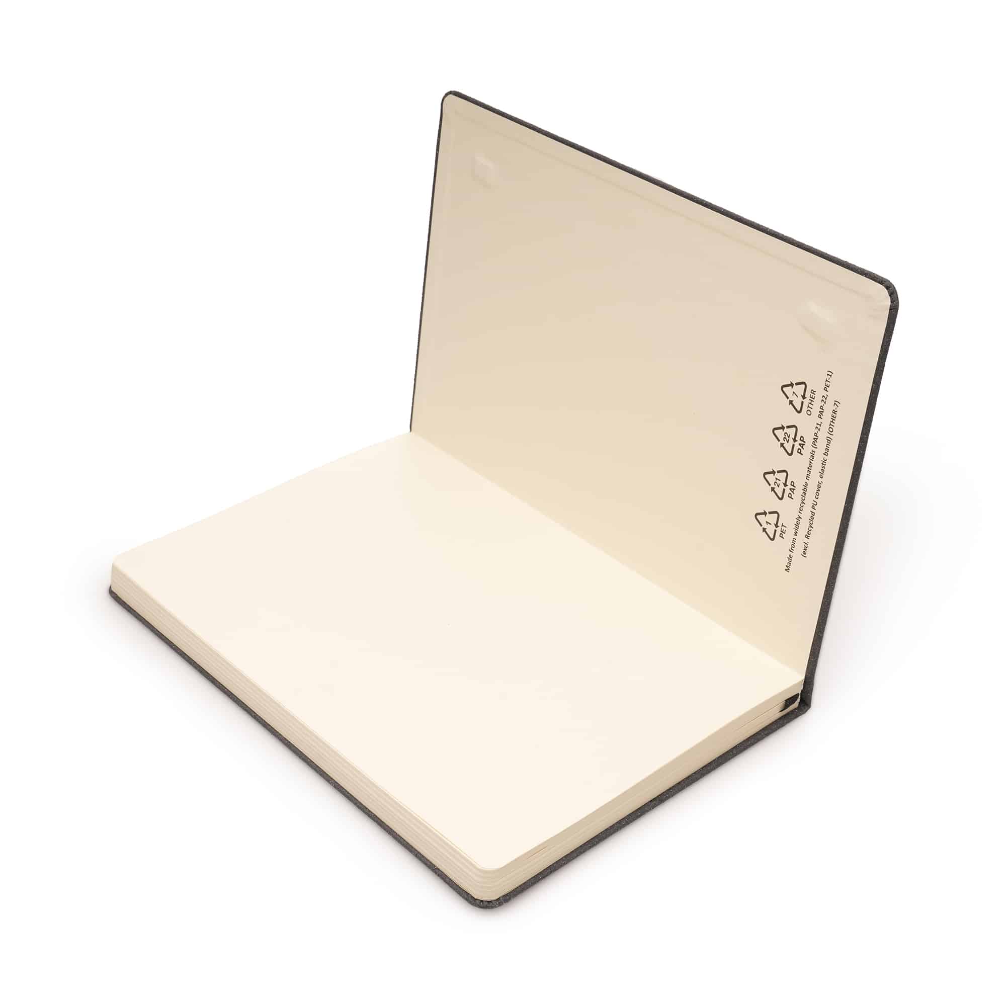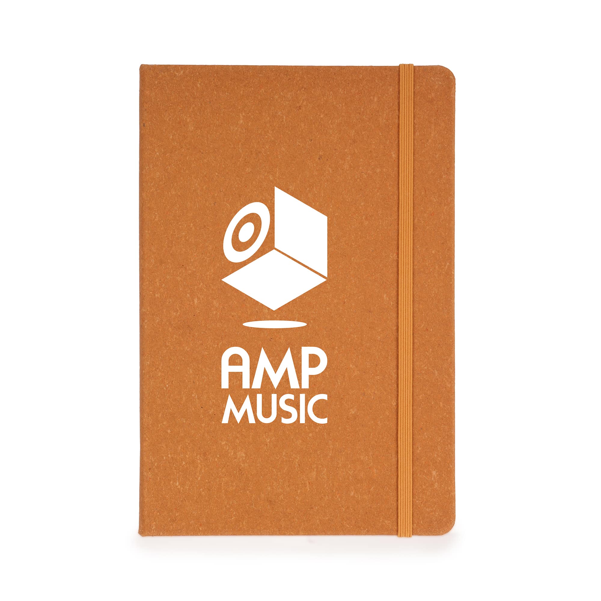 Looking for an natural and stylish way to take notes on-the-go? Look no further than the natural A5 bonded 75% recycled hardcover notebook! With its A5 size, this notebook is compact and portable, making it great for individuals that are constantly on the go. This notebook features a ribbon bookmark allowing you to locate your important notes, elastic closure to keep all your pages in place. The large print space on the cover allows you to advertise your company logo or message in a prominent place, visible for all. This is the perfect on boarding gift to new employees or perfect giveaway at tradeshows, events and exhibitions. Order yours today!