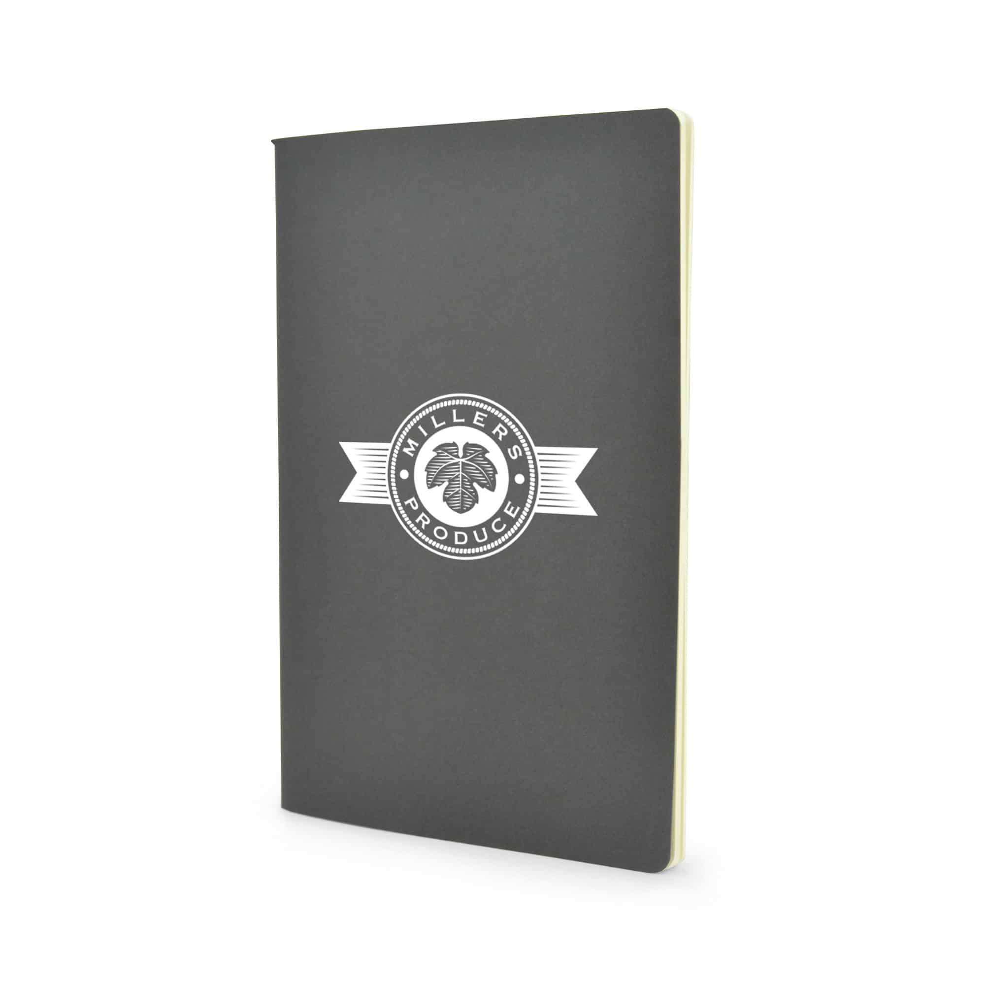 A5 recycled cardboard cover notebook with 40 recycled lined cream sheets.