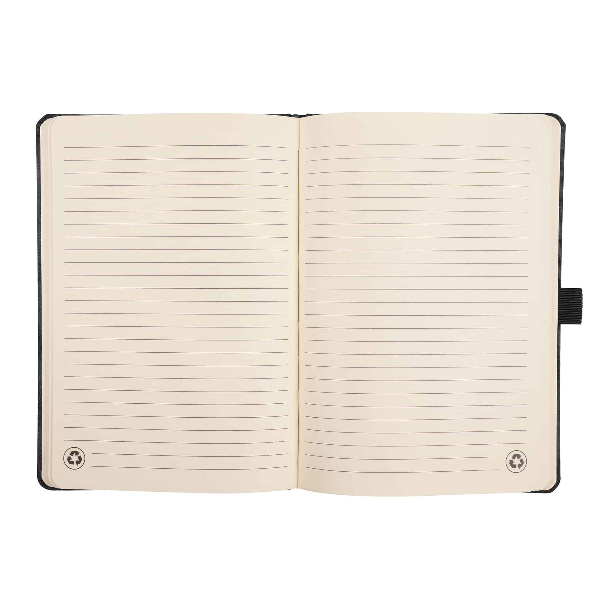 A5 RPET notebook features 80 sheets of recycled lined paper with a pre-printed recycled message, making it versatile for tasks like note-taking, journaling, brainstorming, and sket…