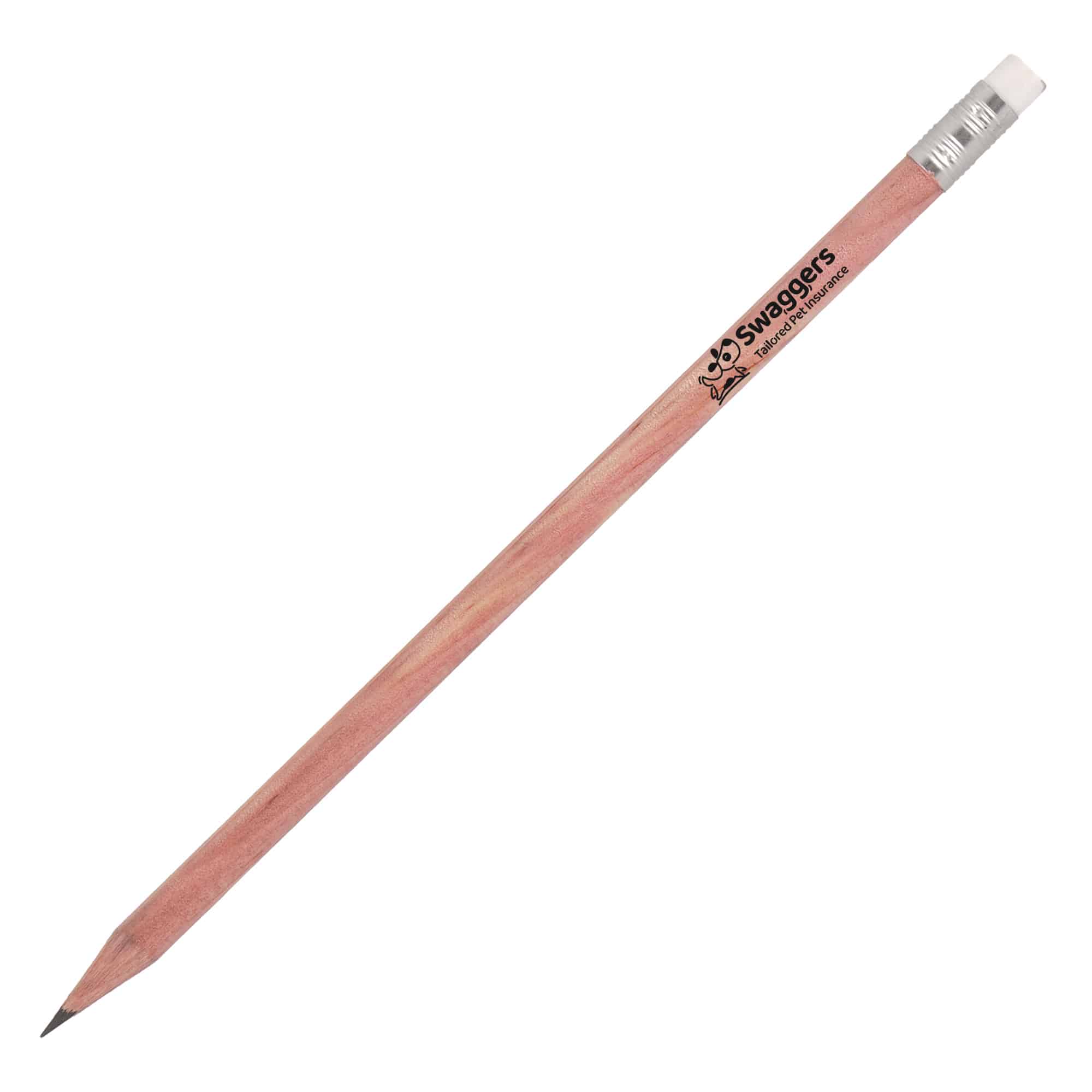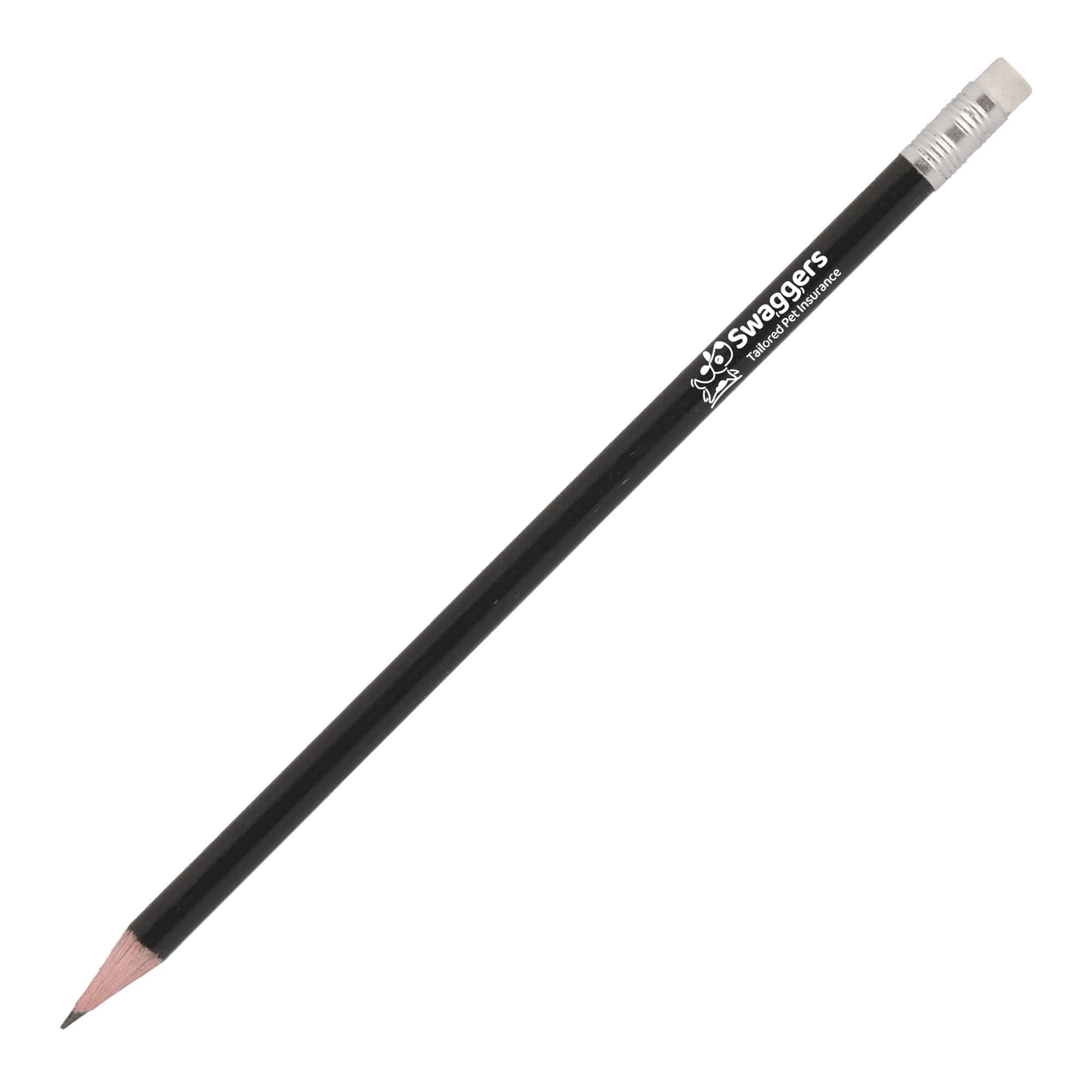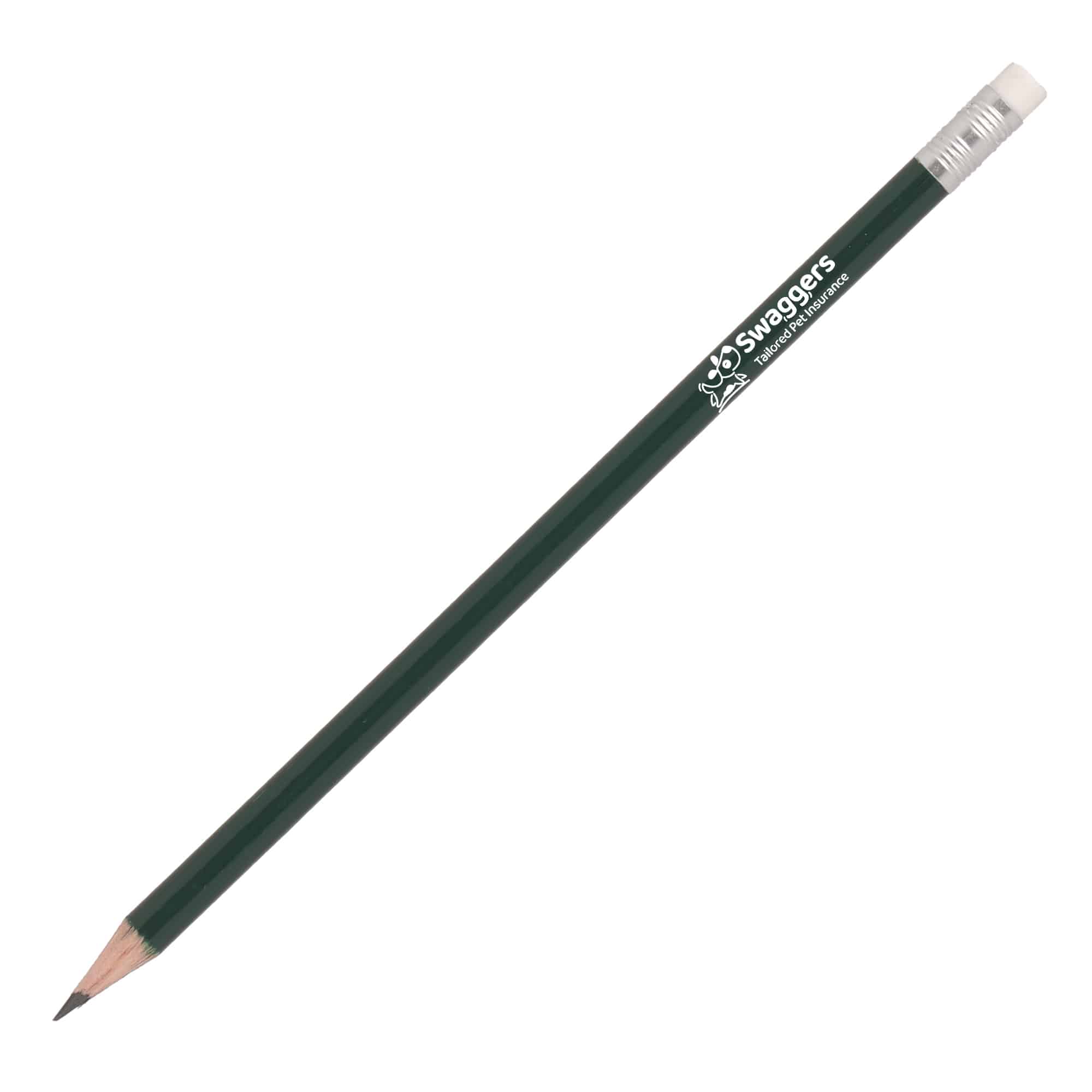 Our UK made promotional pencil is crafted from Weymouth pine, featuring a smooth graphite and clay core for easy writing and a synthetic rubber eraser tip encased in an aluminium f…
