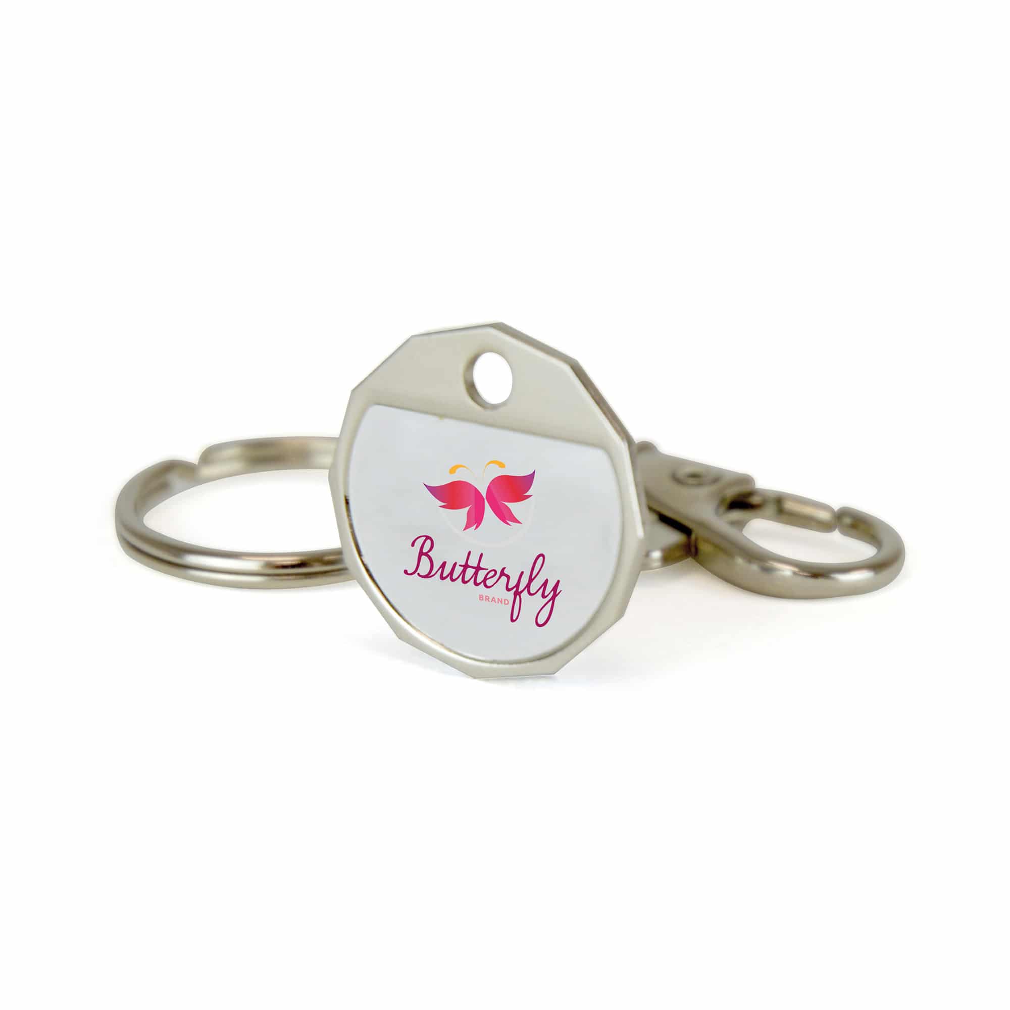 Make your brand stand out with this hassle free trolley coin keyring that comes full colour. This product comes with domed branding giving it an executive feel and finish. With a great branding area for maximum brand exposure, perect to use as a giveaway at trade shows and exhibitions, this really is the handiest promo item! Nickel plated with standard hook and split ring attachment. Price includes doming to 1 position.