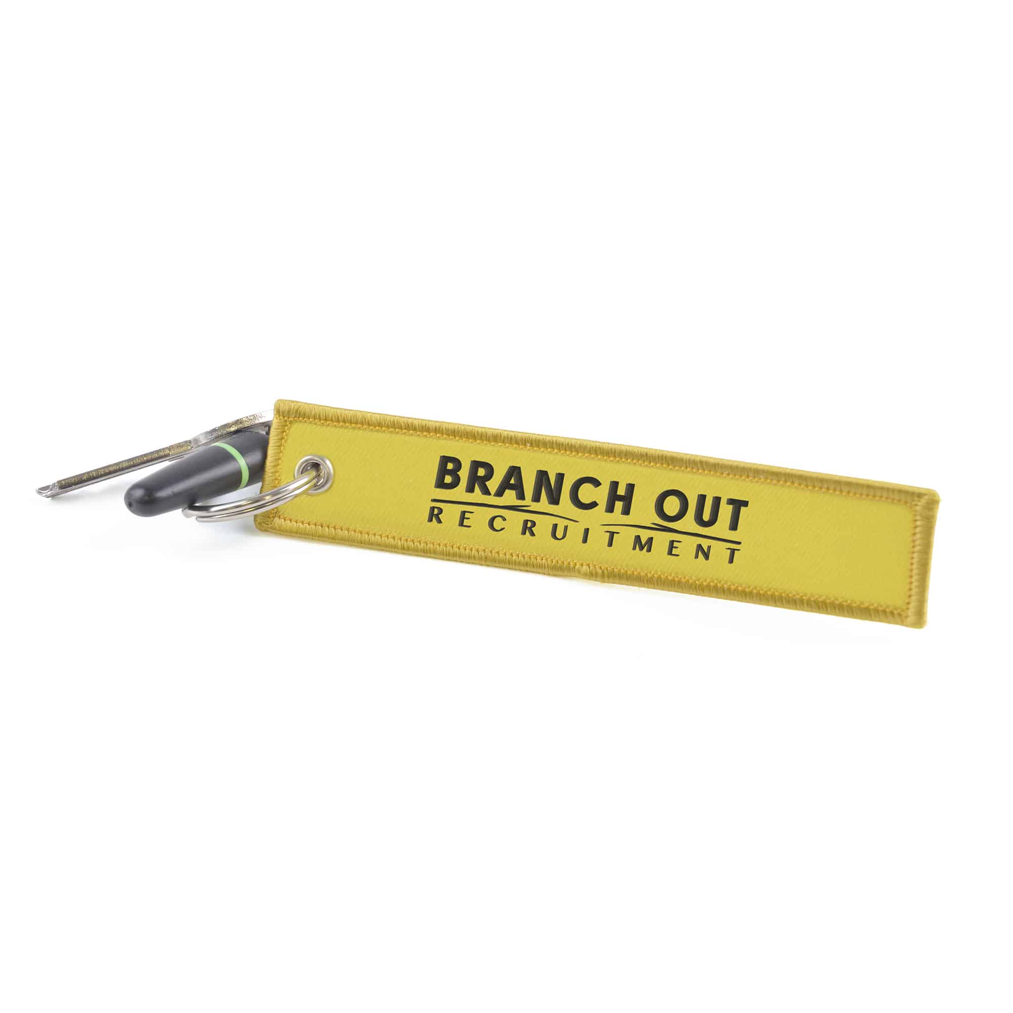 Large embroidered keyring complete with split ring attachment. Embroidery up to 5,000 stitches