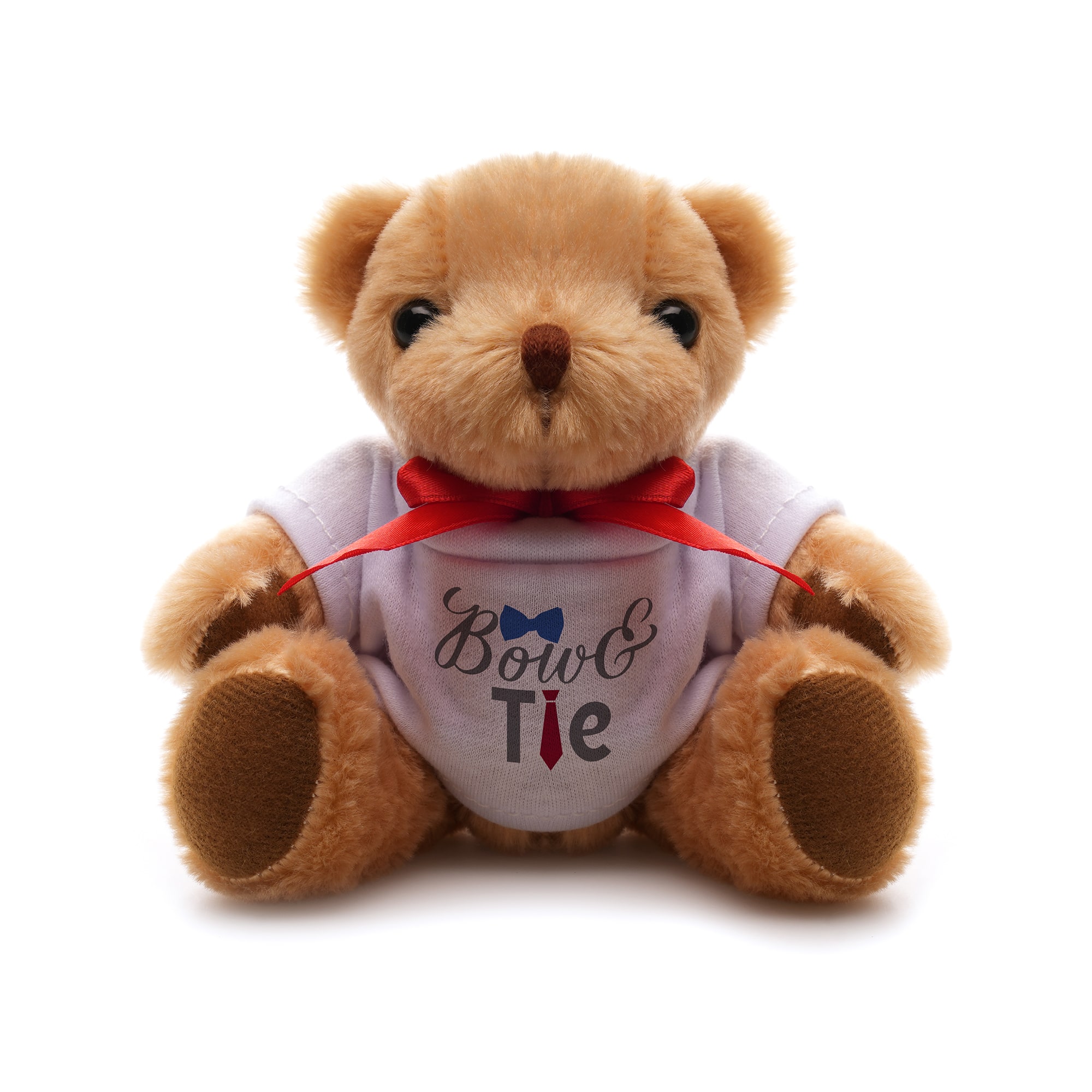 The 20cm promotional fuzzy teddy bear is a perfect combination of cuddliness and brand promotion. Crafted with exquisite attention to detail, this teddy bear boasts a plush polyester fabric, complete with a charming red ribbon neck tie for an extra touch of elegance. The embroidered nose and mouth, made with polyester embroidery thread, give the bear a friendly and inviting look. The teddy bear also features suede hands and ear pads, adding a delightful tactile element. One of the standout features of this promotional teddy bear is the customisable white t-shirt, which can be adorned with your company logo. This presents a unique opportunity to promote your brand and create a lasting impression. The versatility of this teddy bear makes it an excellent choice for a wide range of promotional activities, including tradeshows, events and exhibitions. Perfect gift for schools, nurseries, toy businesses and much more. Make this teddy an adorable ambassador for your brand, spreading joy and promoting your message with every cuddle. Order yours now!