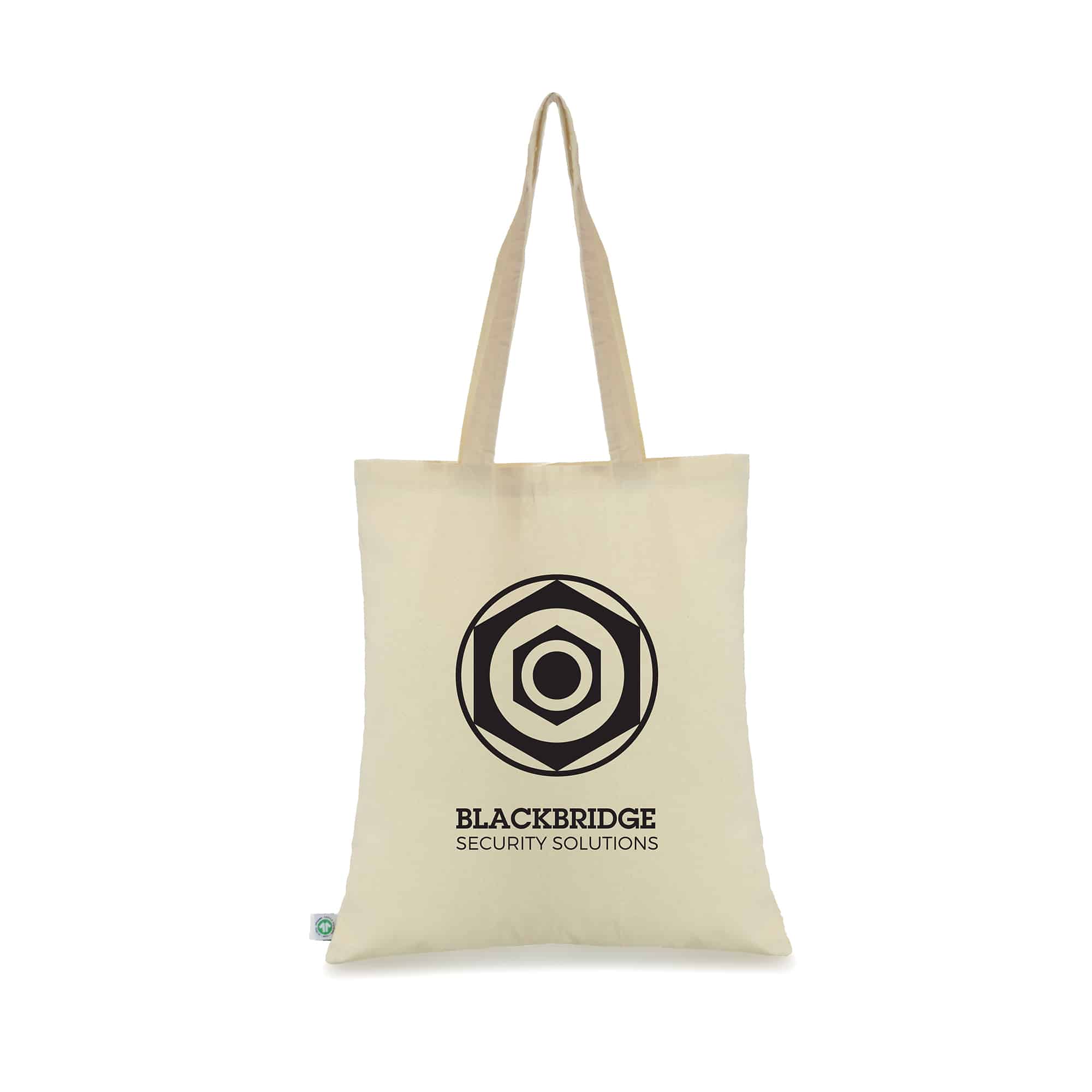 Our 100% certified organic cotton 7oz shopping bag is a perfect promotional solution for gifting, incentives and giveaways. Made from 100% organic cotton, this promotional product will boost your business’s brand exposure with your company logo printed on to the front. It’s also fully recyclable making it a great choice for your advertising or promotion. With long handles it’s comfy to carry around trade shows and exhibitions to pop in literature. Order yours today!