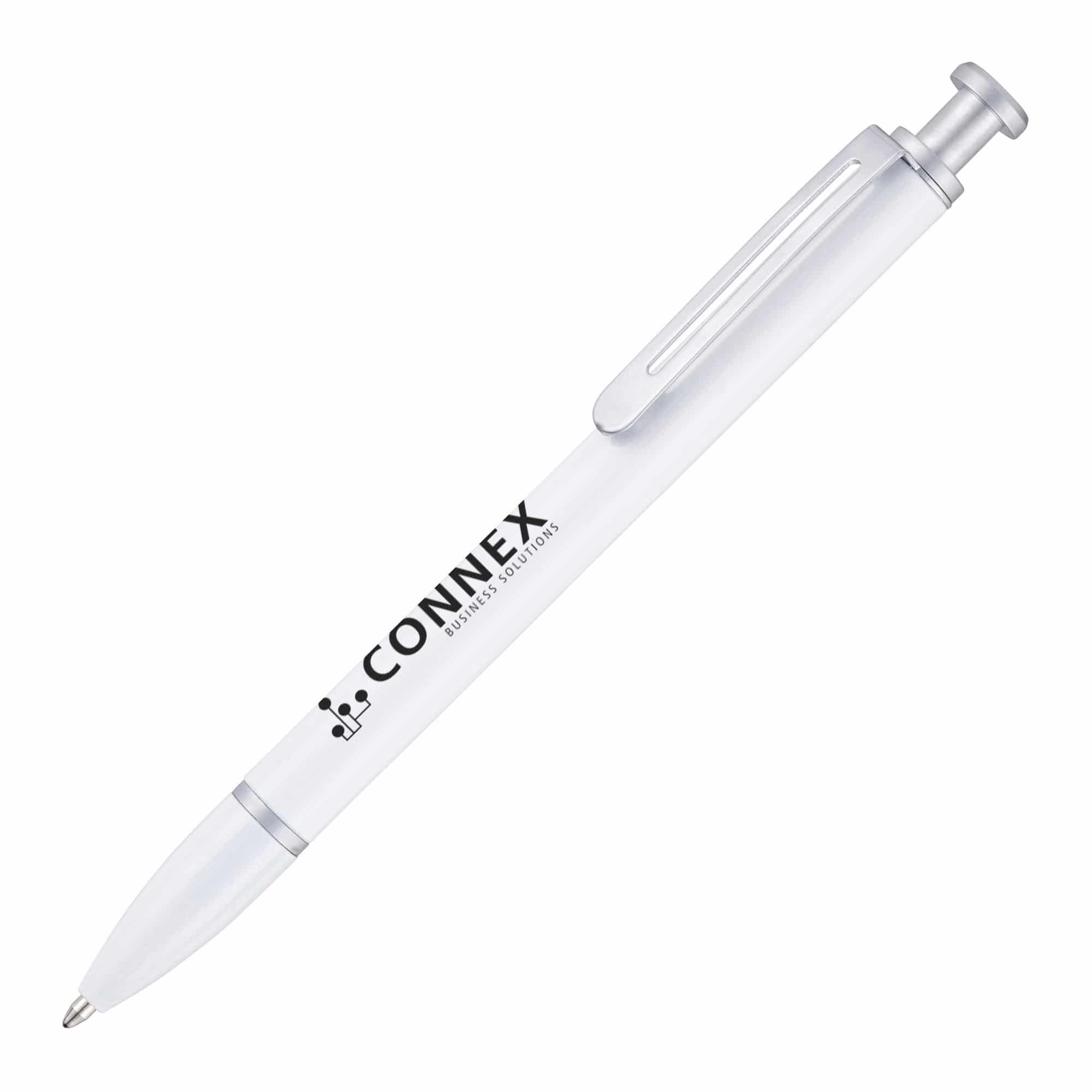 A very well made metal pen in a modern design with a large print area. The black is undercoated chrome for a mirror chrome finish when engraved. (engraving is at an additional cost…