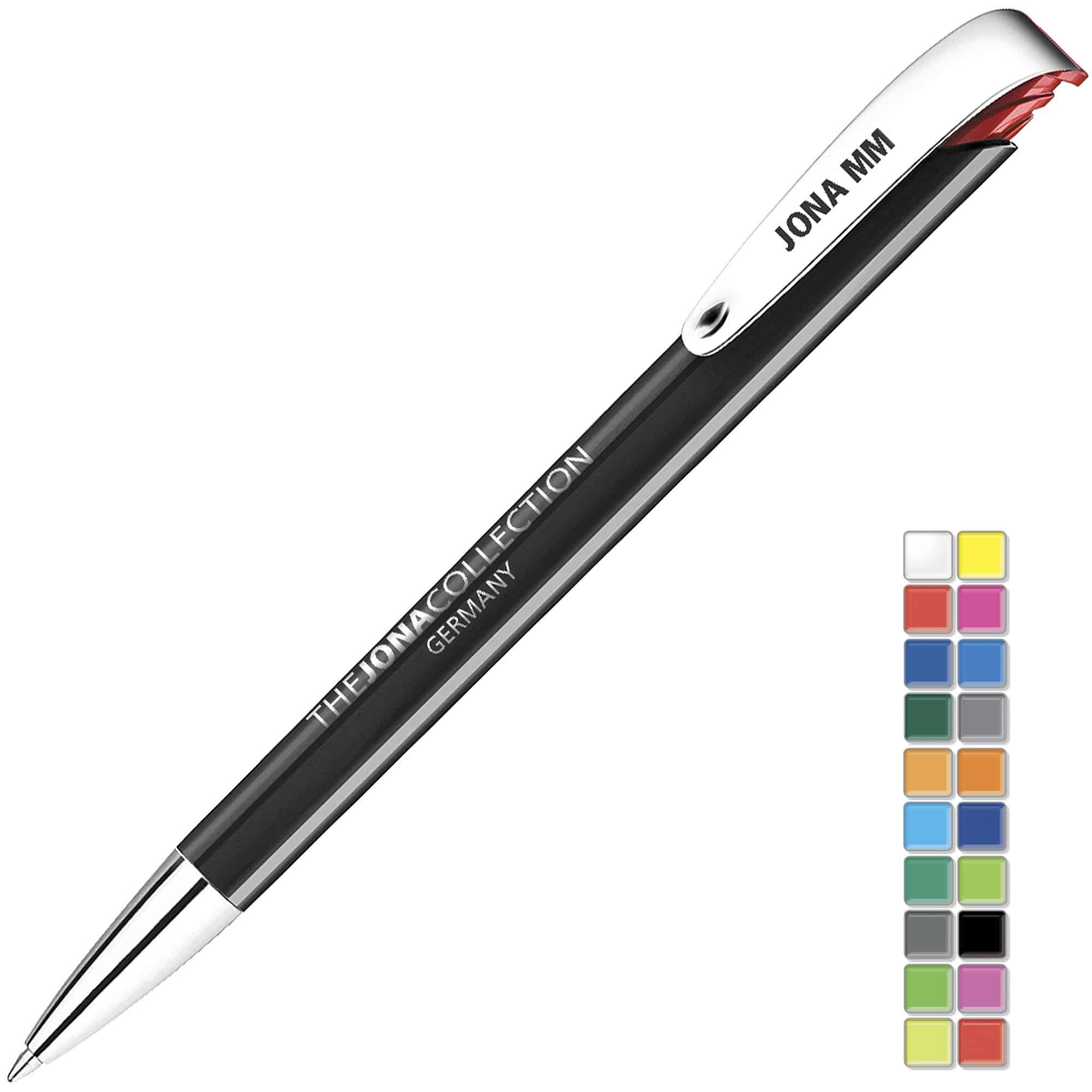 A high gloss push action ball pen featuring a metal nose cone and metal clip. Made in Germany using climate-neutral production and 100% green electricity. 20% of the plastic used to produce this product is made from recycled ABS plastic! This promotional pen is made to order and you can customise the individual parts of the pen. You can pick between a wide range of 14 different standard colours and from 5000pcs you can even pantone match the parts! This push action ball pen is sure to stand out, not only with your colour combinations, but also the sleek and precise design will catch the attention of anyone. Supplied with a quality Silktech refill, made of recycled PP material, that is guaranteed to have a write out length of 3000m and can be supplied in blue or black ink. A combination of precise design and engineering oozes quality and ensures a writing experience like no other. Get in touch today and order now!
