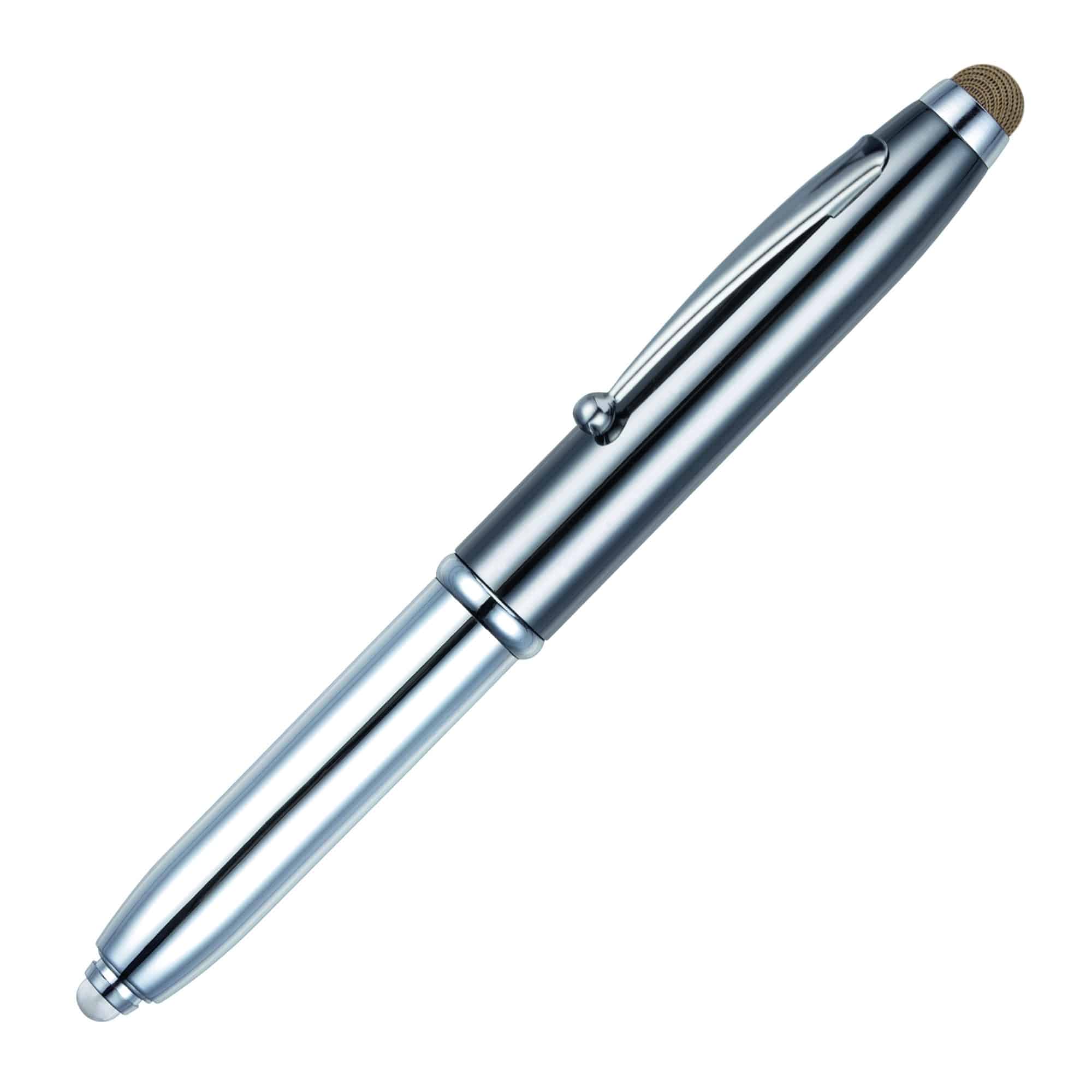 Our best selling multi-function pen with a high end twist! In addition to the ball pen and LED torch this lux, gun metal version will also feature a stylish mesh fabric stylus. Theā¦