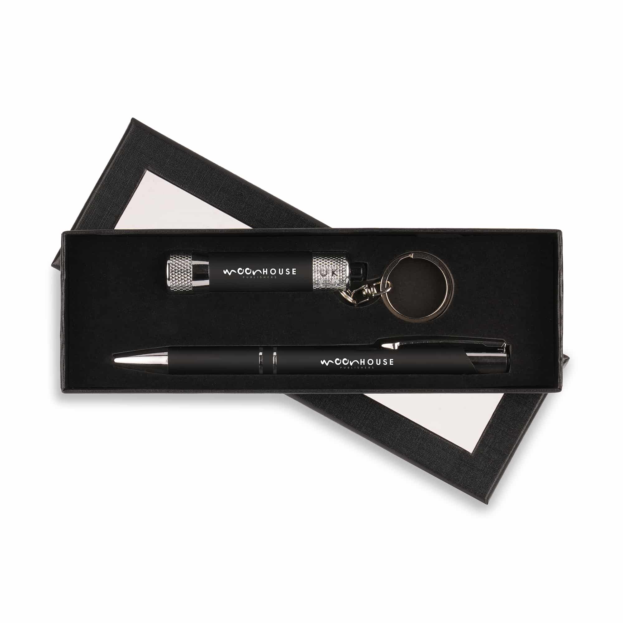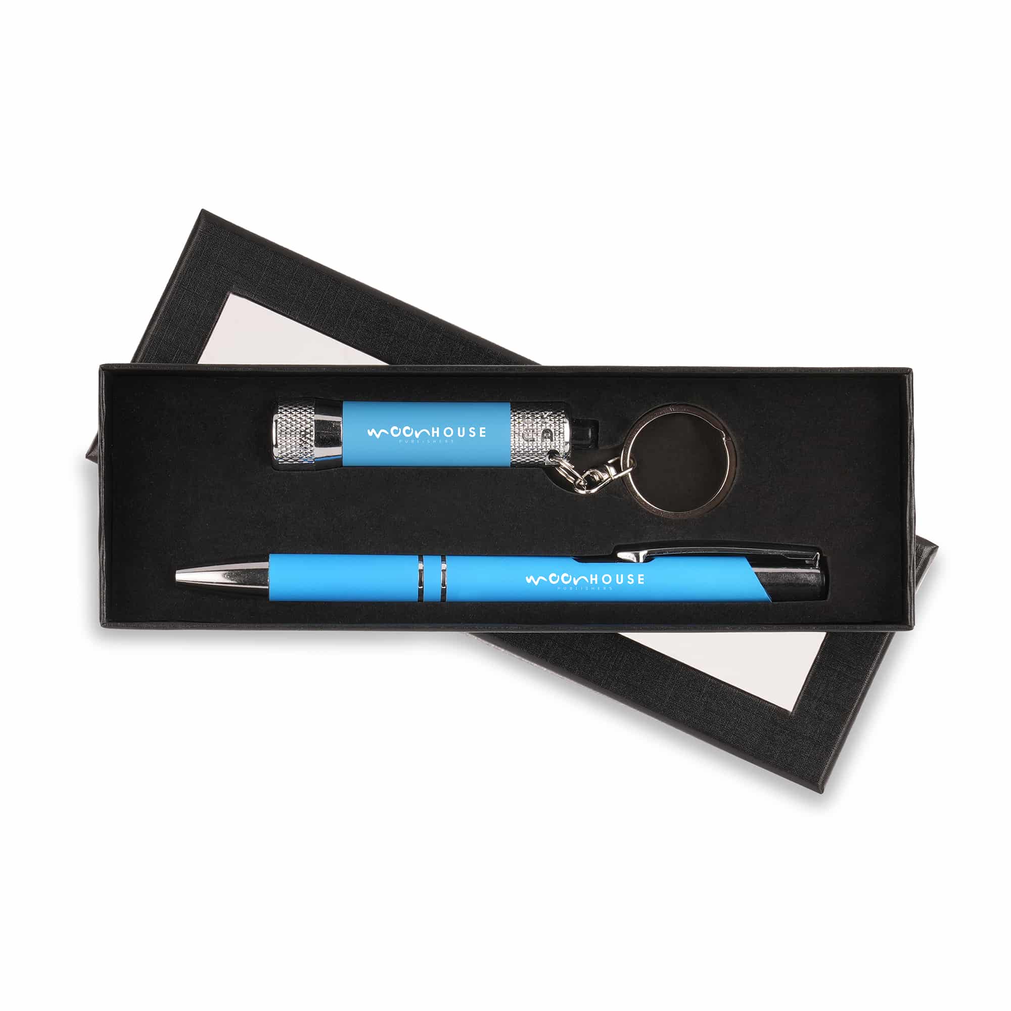 The Lumi torch and pen set is the go to product for a promotional and corporate pen set. The textured box includes a large window that offers a full view into the contents of the b…