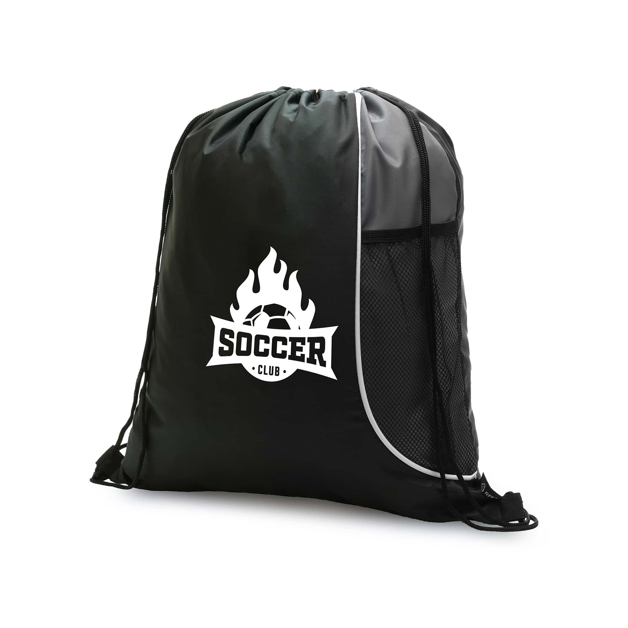 Made largely from recycled plastic, this RPET drawstring bag is the perfect promotion to carry your company logo. The Marty Promotional Drawstring Bag is made from black 210D RPET with a coloured side panel, white HDPE piping detail and a handy mesh bottle pocket. The promotional drawstring bag appeals to a wide and varied audience, from events, trade shows and exhibitions to sports teams, schools and universities. It would be perfect paired with a promotional sports bottle. It’s lightweight, small when folded, wipes clean and budget-friendly too! Choose from black with light grey, royal blue or red side panel and order yours today.