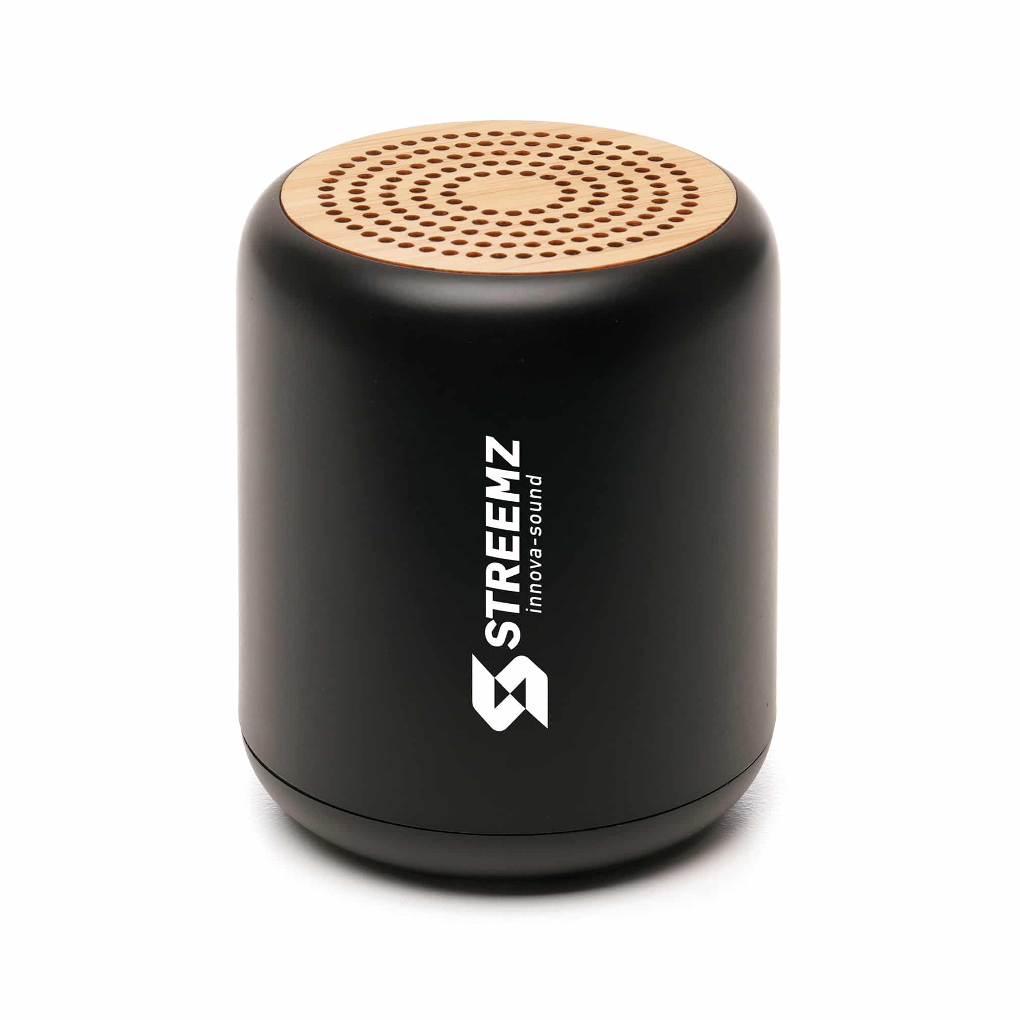 This promotional Bluetooth speaker is crafted with a durable recycled ABS shell and a natural bamboo speaker top, this speaker combines modern functionality with an elegant recycle…
