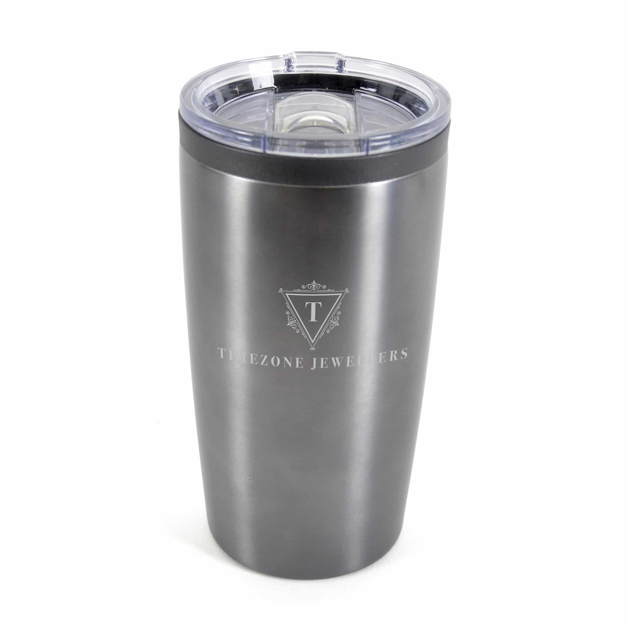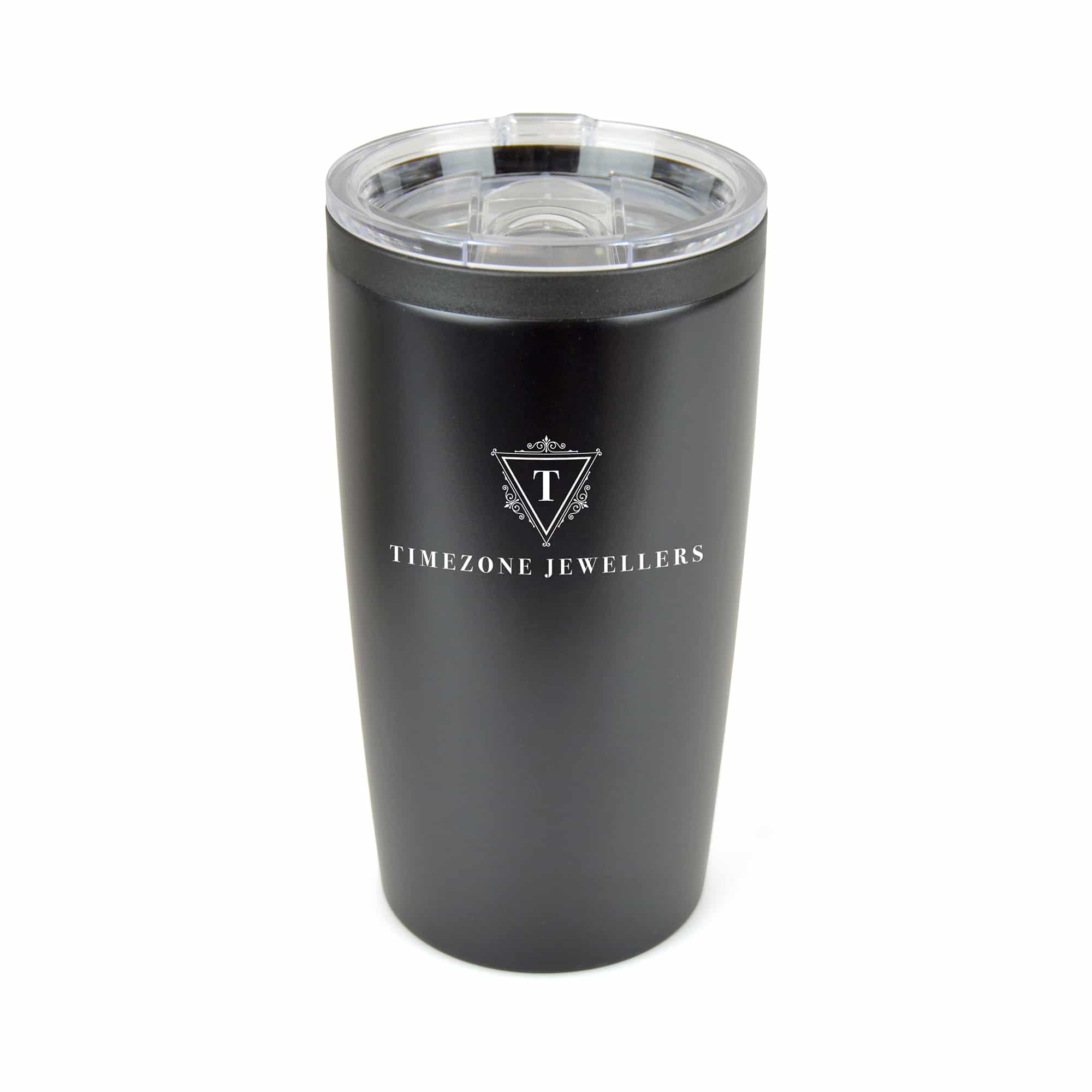 550ml double walled, stainless steel tumbler with black PP plastic inner. Clear plastic push on lid with sliding sipper for easy drinking on the go. BPA & PVC free.