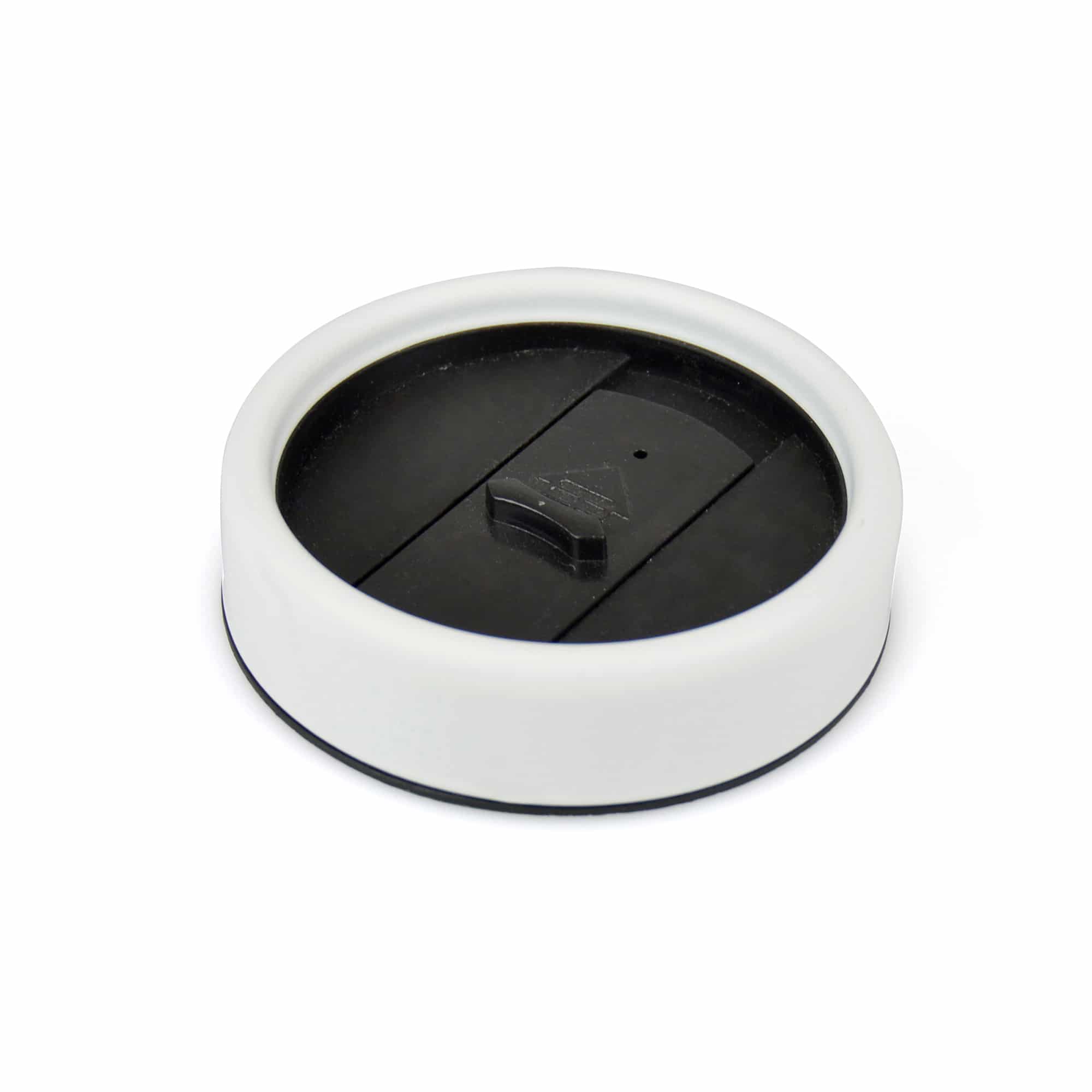 400ml double walled, stainless steel travel mug with matt white finish and contrasting black trim. PP plastic interior, screw top lid and secure slide sipper. BPA & PVC free.