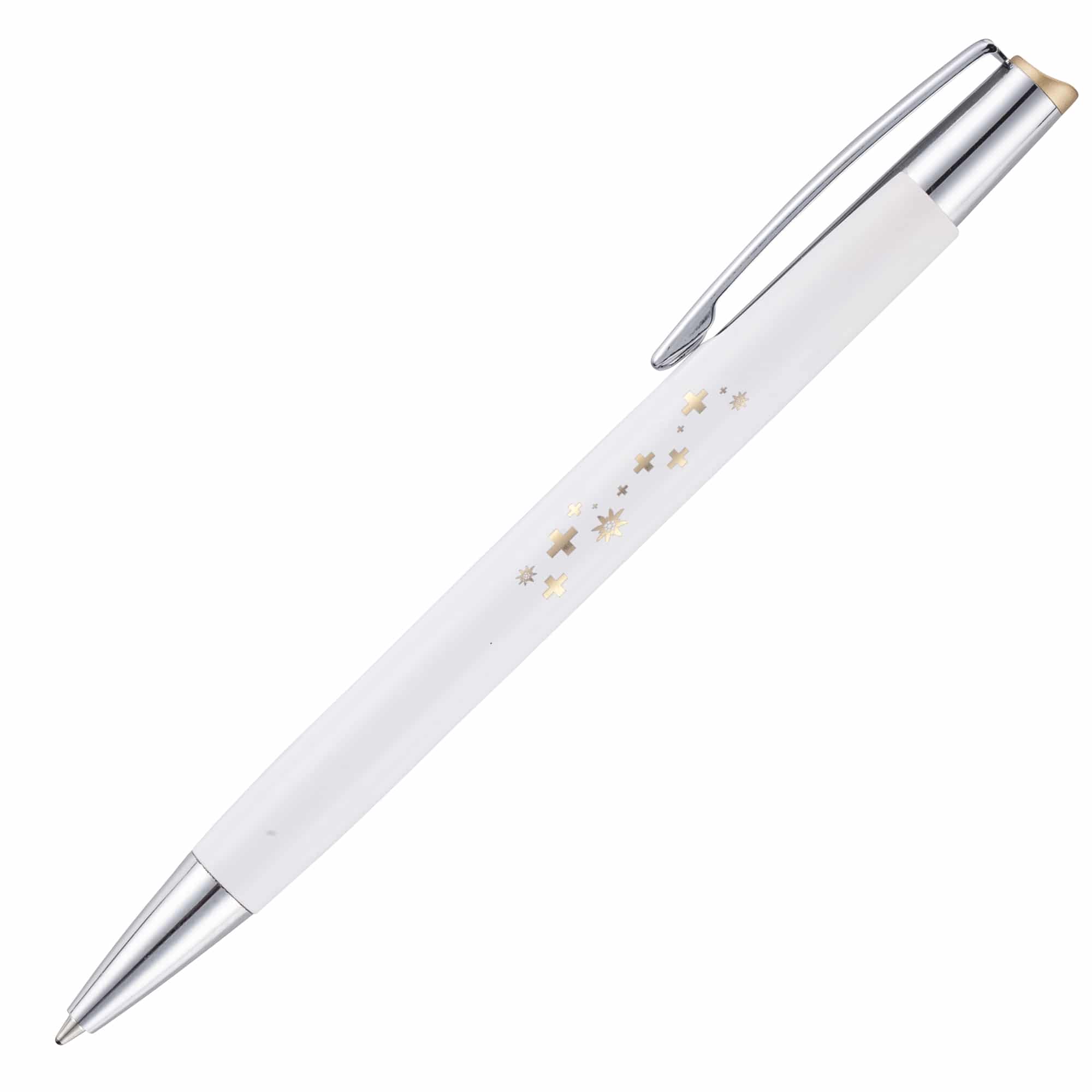 A stunning satin finish ball pen with chrome fittings and colour accented trim – print or engrave to match this!