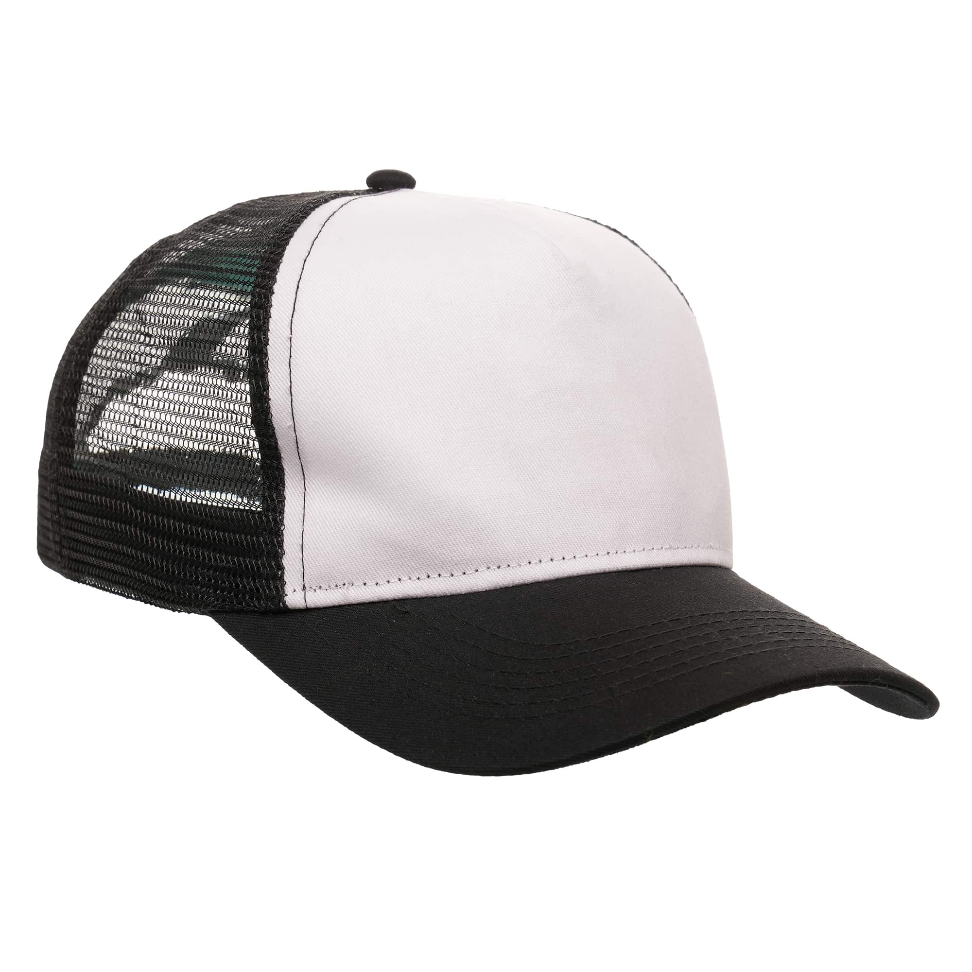 This Promotional Retro 5 Panel Trucker Cap is a versatile accessory that combines a retro aesthetic with a modern and stylish finish. This adult’s sized cap models a curved peak and a mesh back panel, it is a perfect headwear option for those who appreciate a vintage-inspired look. The mesh back design of this cap not only adds a touch of style but also provides excellent breathability, keeping you cool and comfortable even in warm weather. The carefully colour-matched peak and mesh, contrasting with the clean white front panel, adds a cohesive and polished look to the cap. The retro style snapback size adjuster ensures a secure and customisable fit for all. Crafted from a cotton and polyester blend, this cap is durable to withstand everyday use whilst offering ultimate comfort. Embrace the opportunity to showcase your creativity on the large front canvas of this versatile item and turn it into a distinguished advertisement of your brand. Add your full-colour DTF printed Logo. The Direct to Film (DTF) technique provides a high degree of accuracy to create an exact replica of your full colour design and captures even the finest of details in your logo. This cap is a powerful marketing tool that can be worn by your team and customers all year round. Your branded trucker cap is a perfect giveaway for events, tradeshows, exhibitions and sport activities. A cap with a difference. Elevate your brand image and make a lasting impression with this on-trend accessory.