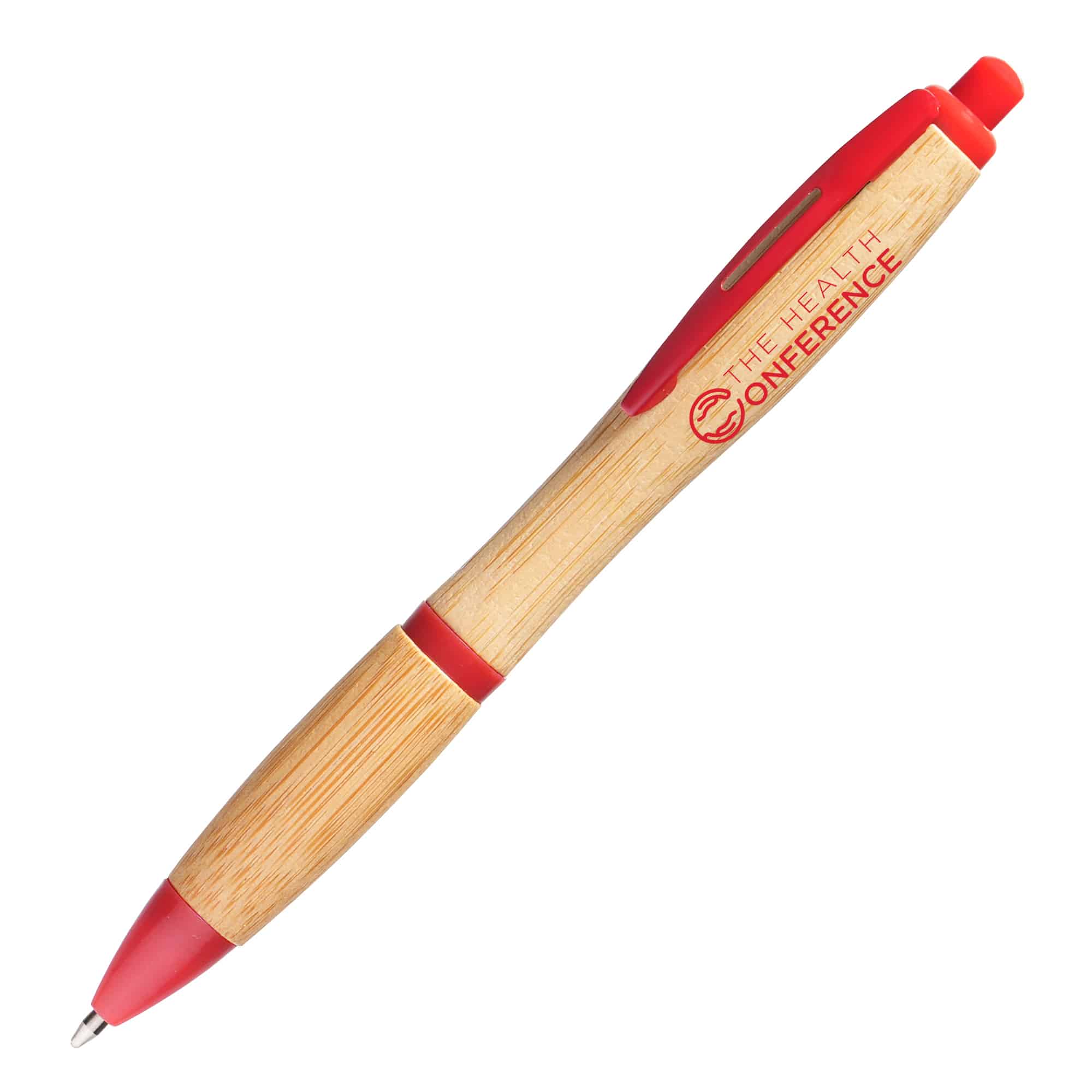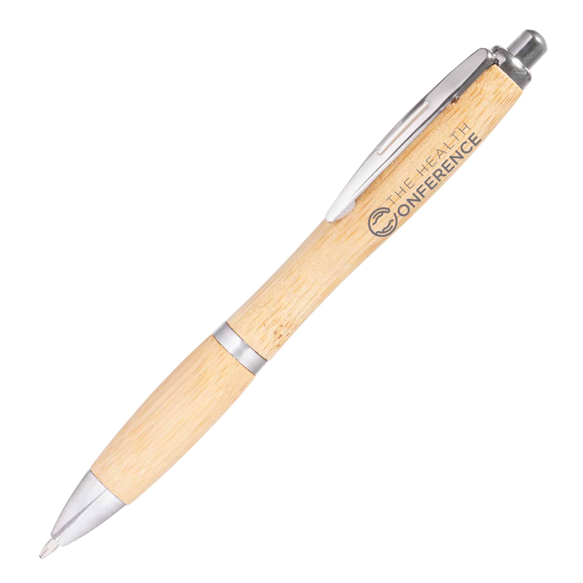 This stylish and ergonomic ball pen features a sleek, curvy design with barrel components crafted from bamboo, offering a natural touch to your promotional merchandise collection. The smooth wooden surface provides an excellent space for laser engraving, pad printing or digital printing, allowing your brand to stand out with a premium finish. Designed for comfort and durability, this pen is a perfect choice for corporate gifting, trade show giveaways, and branded stationery. Its blend of contemporary design and natural materials makes it an attractive alternative to traditional plastic pens, appealing to businesses looking for a thoughtful yet practical promotional product. Order now!