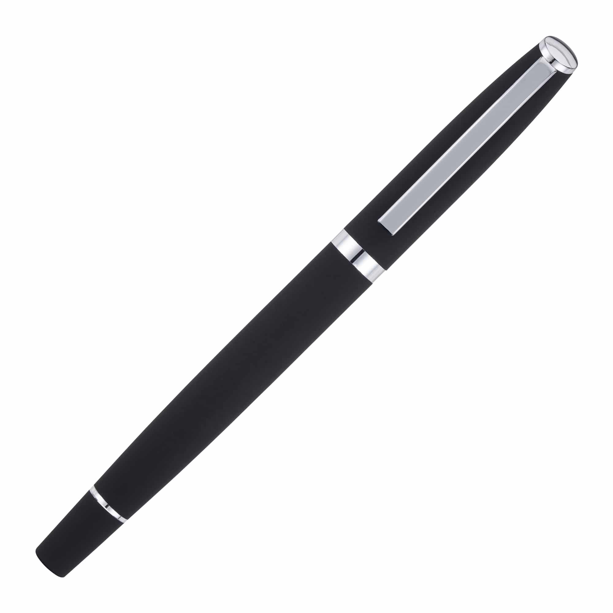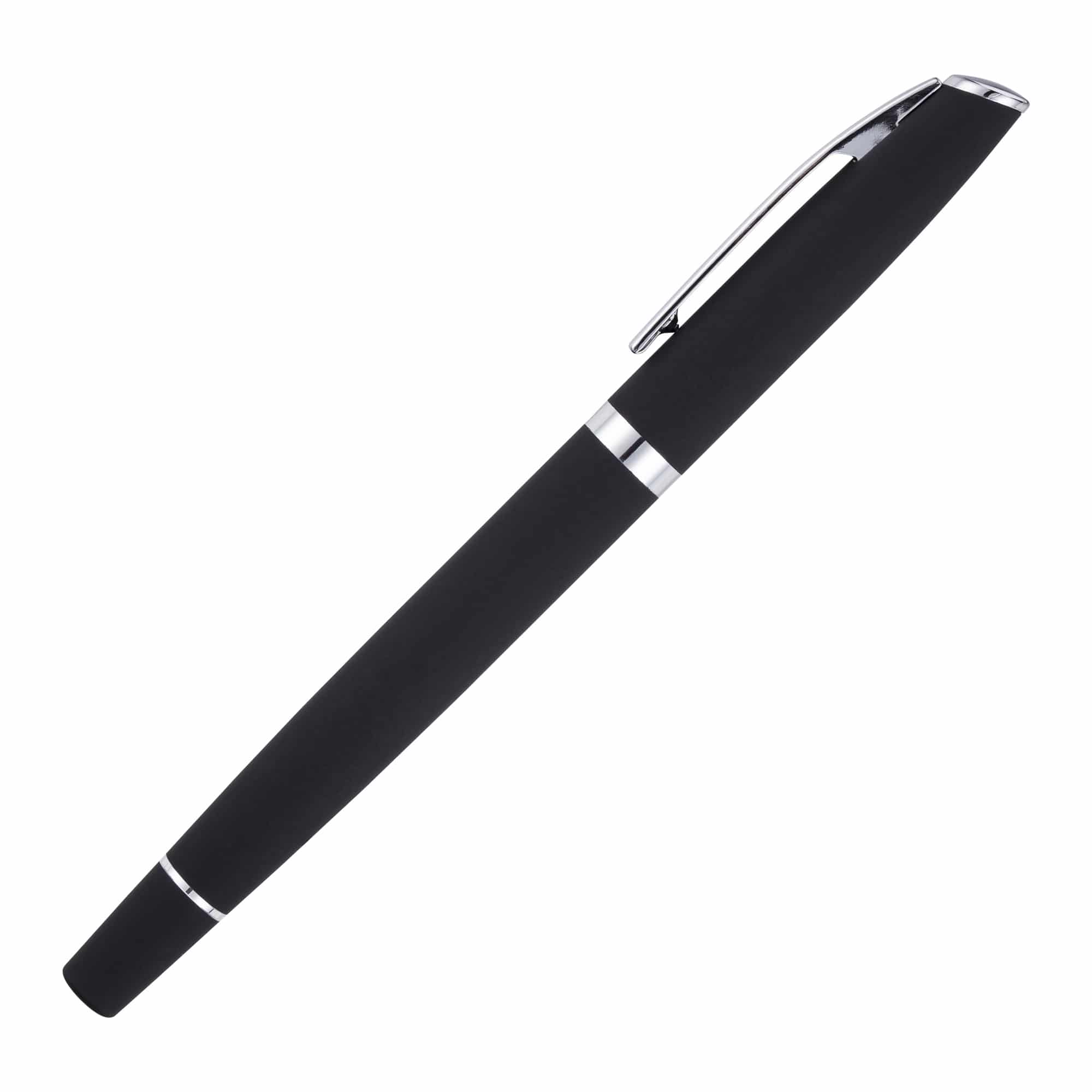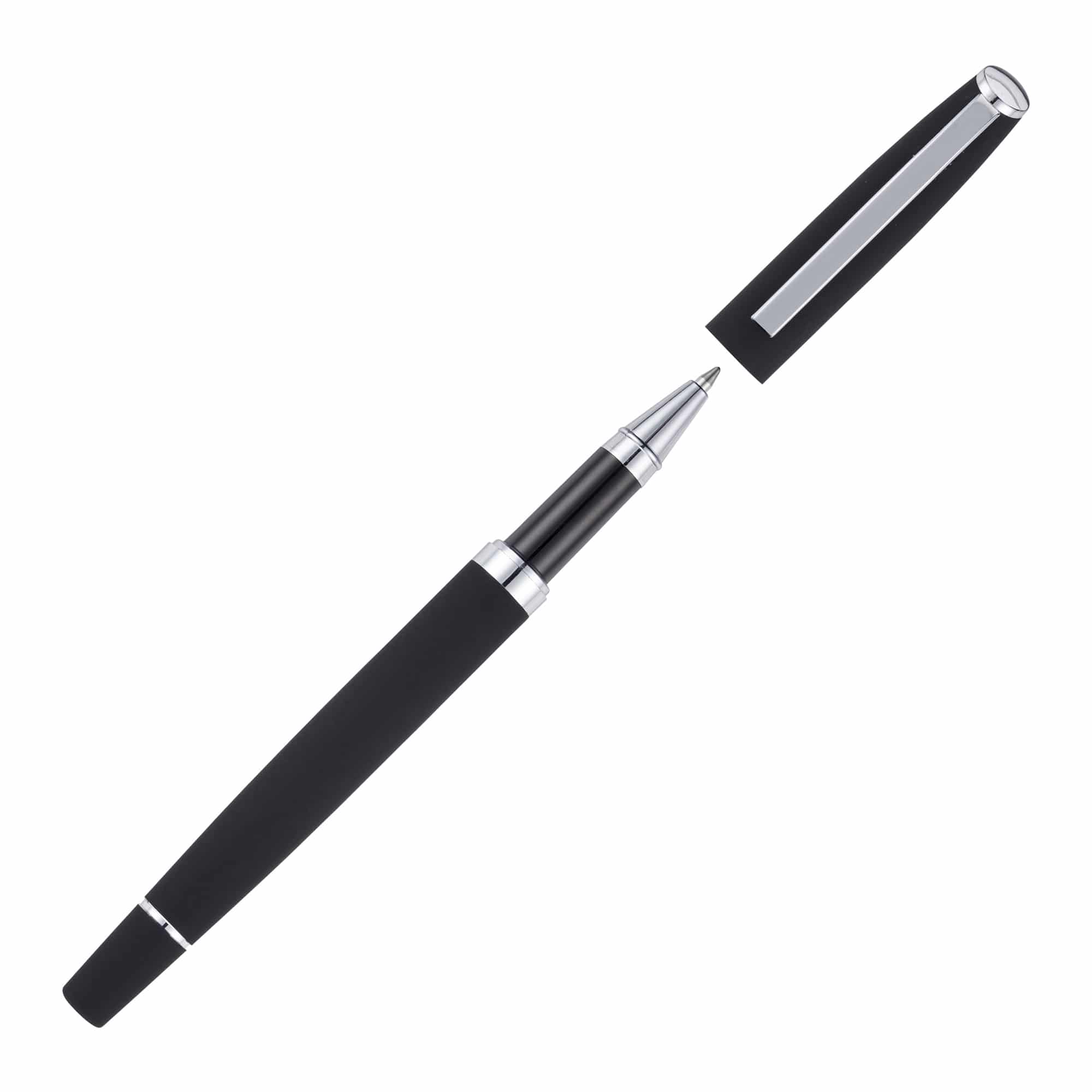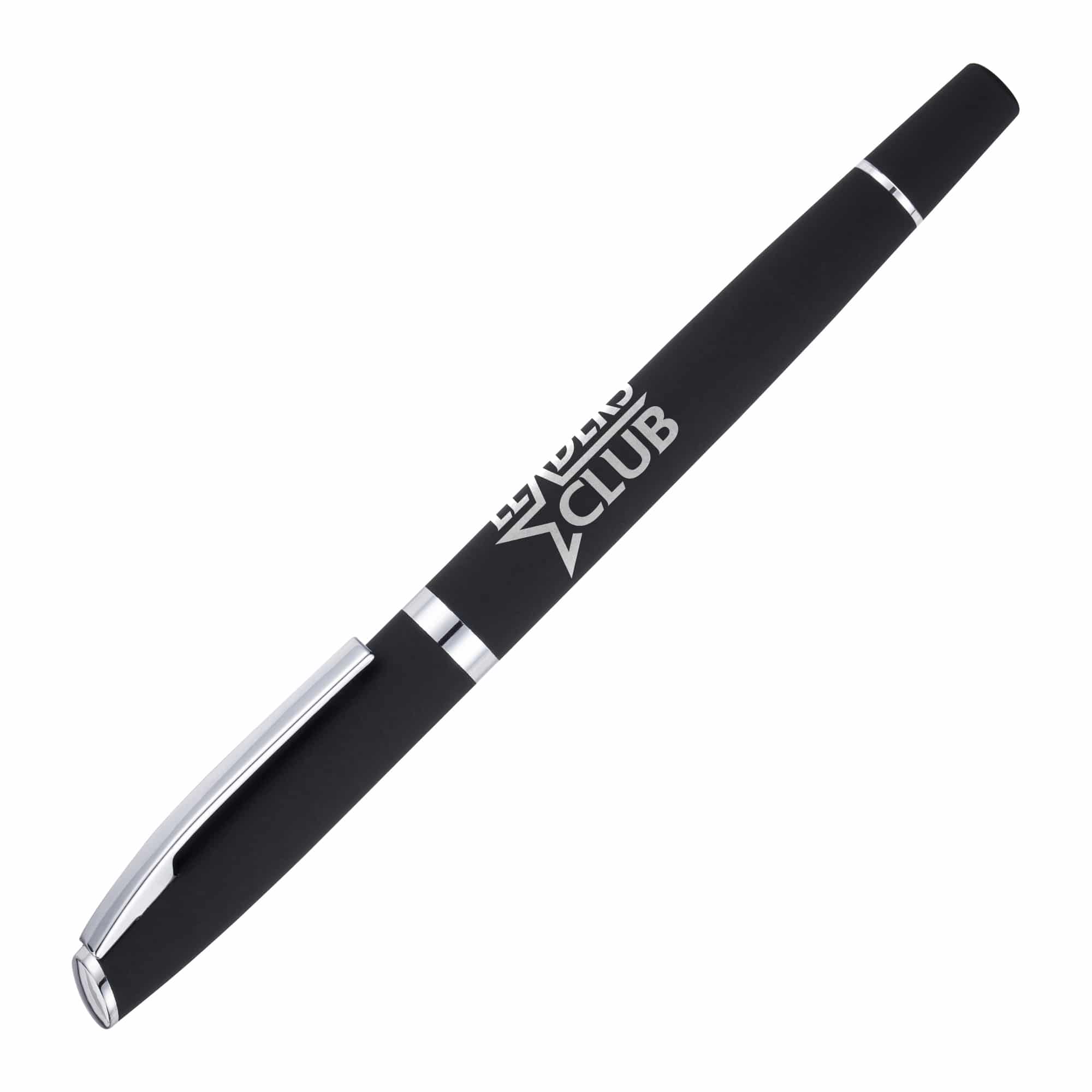 Sleek design and smooth lines in this capped metal rollerball pen. White is a high gloss finish and the black is a smooth soft feel finish. Black pen is engrave or digital print only.